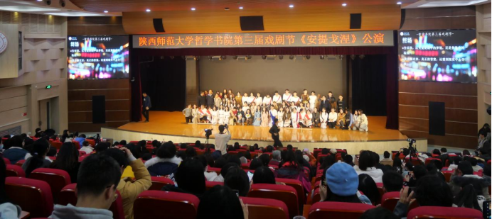 自今年6月份戏剧筹备工作启动来,书院先后组织开展了戏剧沙龙、暑期线上读书会、编剧谈话会、线下观影等一系列围绕《安提戈涅》戏剧的活动,兼具学术性与趣味性,影响广泛,受到师生的一致好评。从首届戏剧节的《苏格拉底之死》、关学宗师张载千年诞辰纪念的《大儒张载》到第三届戏剧节的《安提戈涅》,作为历届文化节的重头戏,书院始终坚持由学生自编自导自演,引导学生在经典阅读中体悟哲学力量,在戏剧演绎中践行文化担当,这也正是书院创新育人理念和模式,发挥拔尖创新人才培养的引领示范作用的重要举措。