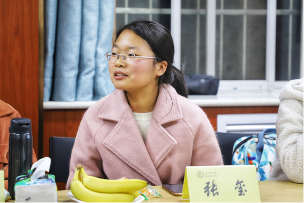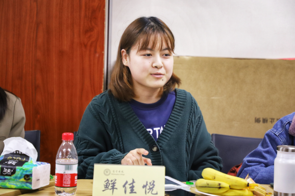 来自外国语学院英语专业的张玺同学分享了自己被书院感动的经历。提起曾经去草堂寺的活动,书院贴心地在行程中设置了“破冰活动”,也让自己收获到多位良友此外,她认为自己并不外向活泼但在书院也能感受到被尊重,被记住说罢,她拿起面前桌签名牌现身说法,不仅是老师尊重同学,同学之间的关系也让自己感到很舒适在书院很有归属感,是家的感觉。