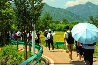 自长安校区出发,驱车大约半小时,师生在翠华山山脚处下车。远眺便可见蓊郁荫翳的树木与湛蓝辽阔的天空,缥缈的几缕云恰好构成了一幅雅趣盎然的淡墨山水画,正值春末夏初时节,鸟鸣花香,草长莺飞,一片生机勃勃万物竞发的景态。