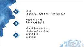2022年研究生入学考试中,栗红岩同学被录取到中国人民大学世界史专业。本次分享会上,她主要从文科备考策略,考研复试方法等方面进行了分享,并结合自己的专业向大家详细介绍了考研择校过程中的注意事项与方法。她认为,在备考策略中,对于文科科目的复习,尤其要抓住记忆力这一因素,她也向大家分享了自己的记忆方法,比如:理清脉络,整理框架,注意知识与知识之间的连续性。最重要的是,应该将知识点真正内化为自己的东西,形成自己的记忆思维,找出内在规律,不要死记硬背。她还将英语、政治两类科目的记忆方法的差异提出了自己的见解,思想深刻,逻辑清晰。其次,栗红岩同学提示大家要在日常的学习过程中培养语言表达、逻辑思维心理抗压等综合能力。最后,她引用了罗翔老师的一句话勉励大家:“对于不可控的事情,我们要保持乐观和自信;对于可控的事情,我们要保持谨慎和节制,你的焦虑和恐惧于事无补。”