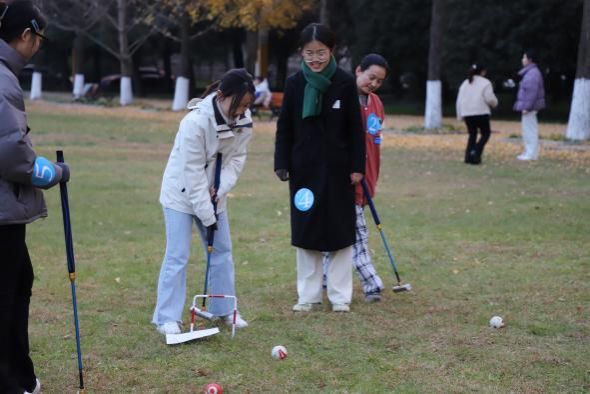 为促进学生全面健康发展,营造积极向上、健康文明的校园氛围,麻豆AV 于11月25日下午在第五届文化节期间举办了“挥杆对垒,交个‘盘’友”主题竞技活动。全校近百名本科生踊跃报名组队,迎接这场别开生面的比赛。在这次活动中,学生们纷纷体验了门球和飞盘活动,他们尽情挥杆,争分夺秒,不仅锻炼了身体,更增进了彼此之间的友谊。整个活动持续了三小时,现场一片欢声笑语,洋溢着青春活力。
