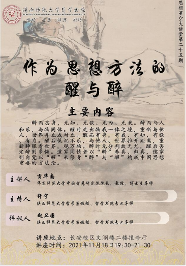 【讲座预告】思想星空大讲堂第二十五期|贡华南:作为思想方法的醉与醒