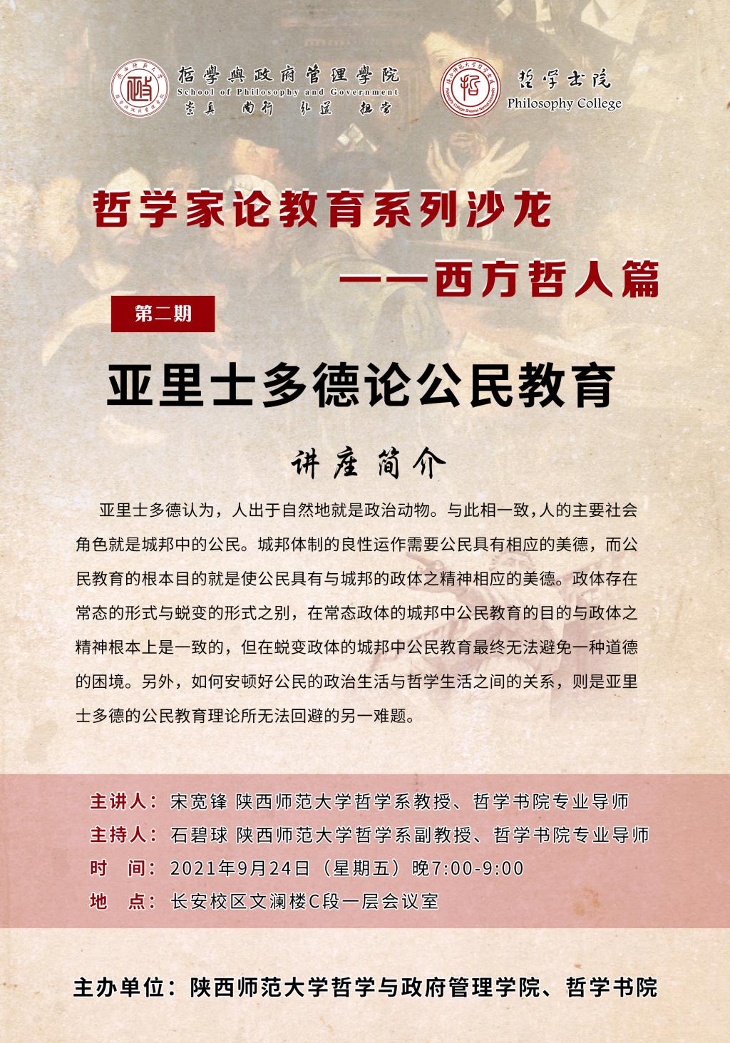 【预告•哲学家论教育系列沙龙】第二期:亚里士多德论公民教育