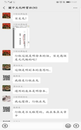 晚19:00,主持人覃怡佳美首先对本次读书会的学习目标和程序模式做了简要阐释。在学生研读为主的第一个阶段:同学们争先领读、分享了自己对《张载传》的理解。“关中自古多豪杰,其忠信沉毅之质,明达英伟之器,四方之士,吾见亦多矣,未有如关中之盛者也”,带着对张载的敬意,感受他曲折而充实的生平经历,体会他所面对的具体问题,尝试理解关学形成的内在原因和学风特质。