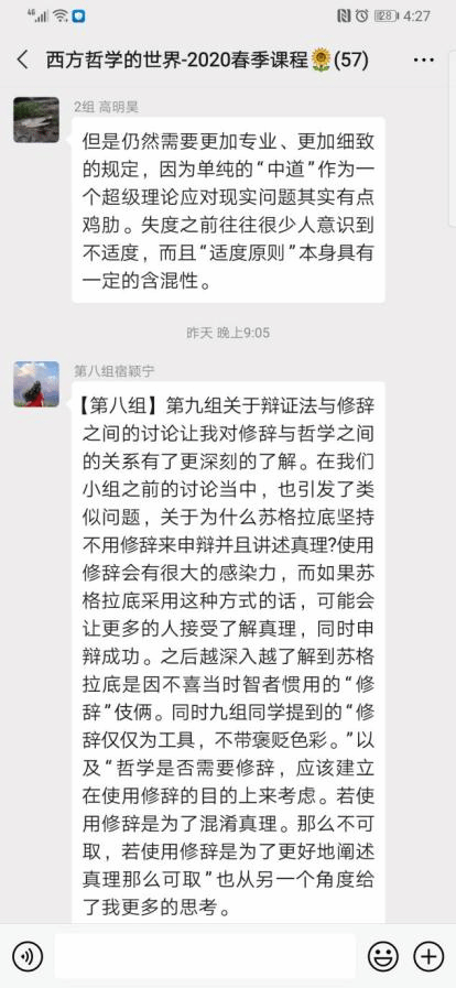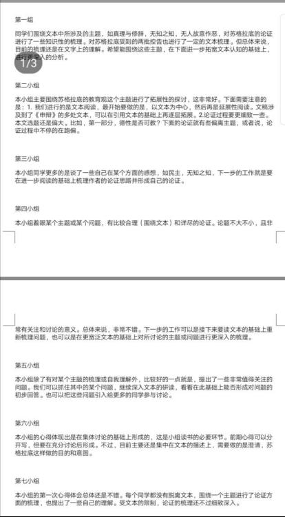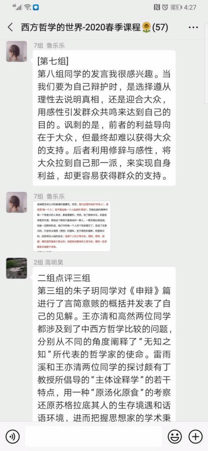 第二个小组围绕着人的德性是否可教、苏格拉底的教育方式、教育目的及其意义等几个问题展开讨论,对苏格拉底的教育观作以简单认识和总结。
