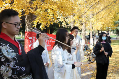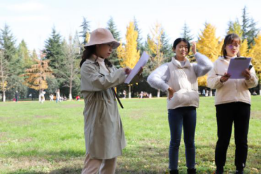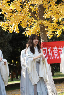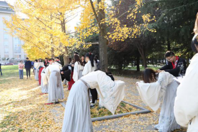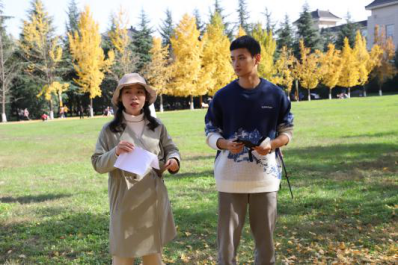 比赛结束后,同学们留恋师大浪漫之秋,纷纷在银杏叶下拍照留念。