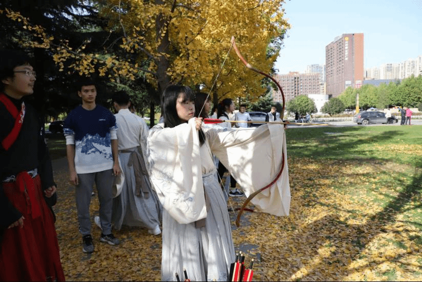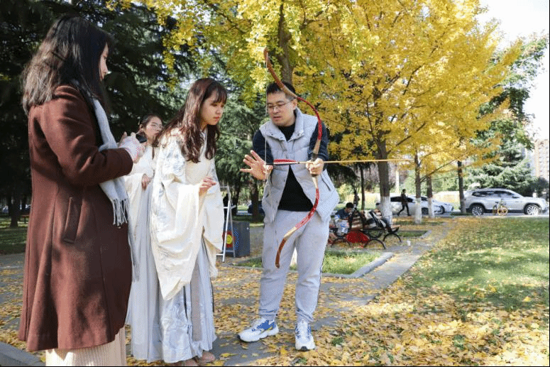 上午9:00,现场培训与练习活动在校友林成功进行。本次活动由体育学院黄聪教授对传统弓试射、投壶进行现场教学与练习,20余名师生参加。