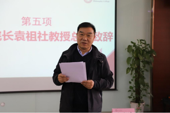 常务副院长、哲学与政府管理学院院长袁祖社教授对本次会议进行总结。袁院长对各项目团队在寒假两个多月期间对家乡各方面调研取得成功表示肯定,并代表书院对此次寒假返乡实践的相关负责老师、两位主题分享的同学与各实践团队同学们的付出表示衷心感谢,他鼓励同学们再接再厉,传承书院优秀传统,挥洒热情与汗水,用满腔热血彰显出筑梦新时代的青春力量,在理论转化成实践的探索中再创佳绩。