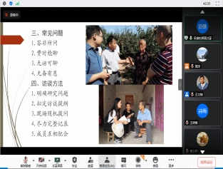在师生交流环节,同学们从研究主题和问题、研究方法的选择等方面提出了困惑,参会老师一一予以回应。此外,王文琦老师也鼓励同学们在“关中”基础上,结合自己家乡的乡约民俗等进行跨区域对比调查。