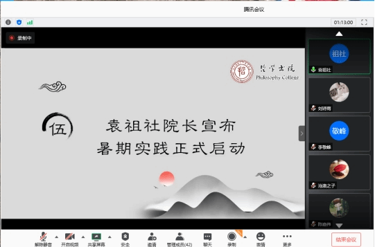 尹兆坤老师提出了书院对“为学”与“为人”的重要思考,并说明了暑期实践的注意事项。他强调安全问题是首要问题,在此基础上希望大家有所学、有所获。随后,高洋老师从网上报备与新闻宣传、阶段性要求、财务管理等方面的具体问题做了进一步补充。