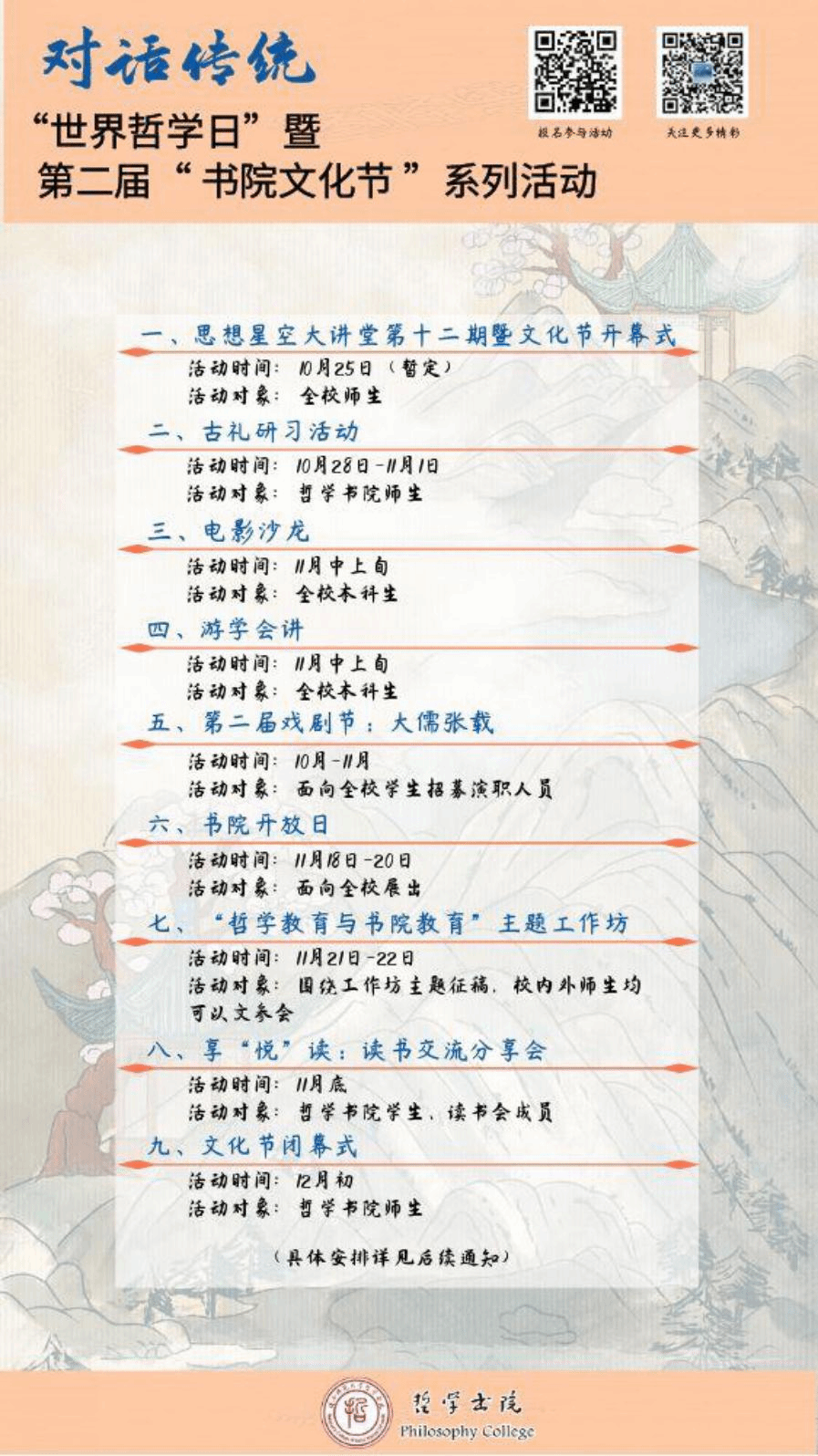 第二届文化节将围绕“世界哲学日”开展系列精彩活动。活动方案如下: