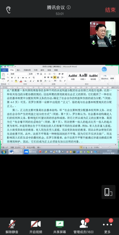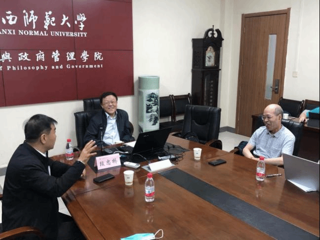 常务副院长袁祖社教授主持,以线上线下相结合的方式开展,哲学与政府管理学院的宋宽锋教授、寇东亮教授、曹树明教授、石碧球副教授和来自各个专业的十余名学生在现场参与,在线上同步聆听讲座的还有两百余人。