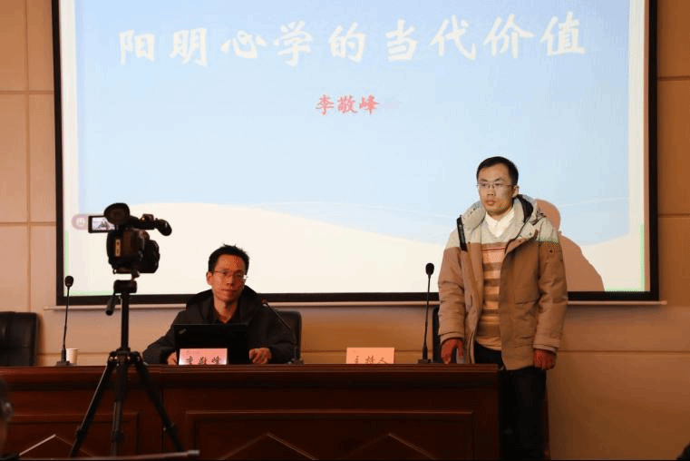 哲学与政府管理学院副教授李敬峰带来的“阳明心学的当代价值”,讲座由刘佳宝老师主持,并通过“腾讯会议”全程直播,线上和线下共有近百名听众参与了本次讲座。