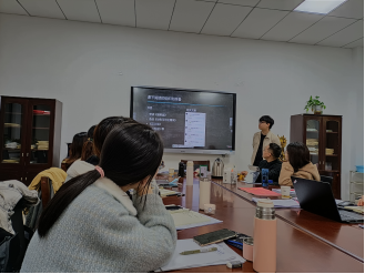 在对会议情况作了基本介绍后,助教开始汇报目前工作情况和本学期工作规划。在本环节中,每位与会的助教老师依次上台交流自己助教工作的完成情况、工作过程中的总体感受和自己对本学期未来工作的规划与展望。其中,部分助教老师的分享,不仅展示了助教日常工作的完成情况,还向大家分享了课程班级管理的独特经验,如:向同学分发调查问卷了解班级学习的总体情况和同学们的体会感受,在课程班级交流群中部分采取匿名发言机制保障同学们畅所欲言及师生的真诚互动,以及分享相关电子学习资源并组织同学们学习等。此外,助教老师们分享的工作体会与感受也反映了部分课程班级在日常学习管理中所存在的同学参与不足、助教老师知识储备有限、师生互动较少等困难情况。