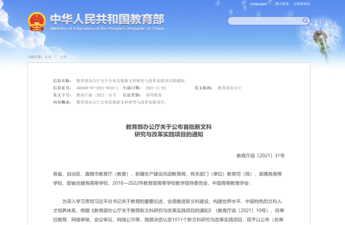 教育部办公厅日前印发《关于公布首批新文科研究与改革实践项目的通知》,公布了首批新文科研究与改革实践项目,共认定1011个新文科研究与改革实践项目,麻豆AV
