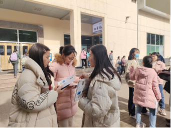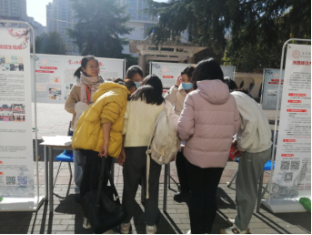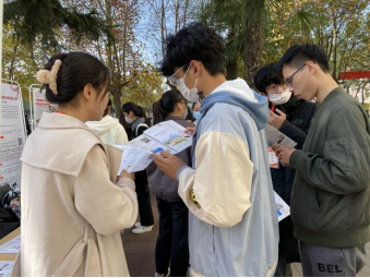 长安校区阳光苑、溢香楼、首阳书房外的招生咨询有序开展