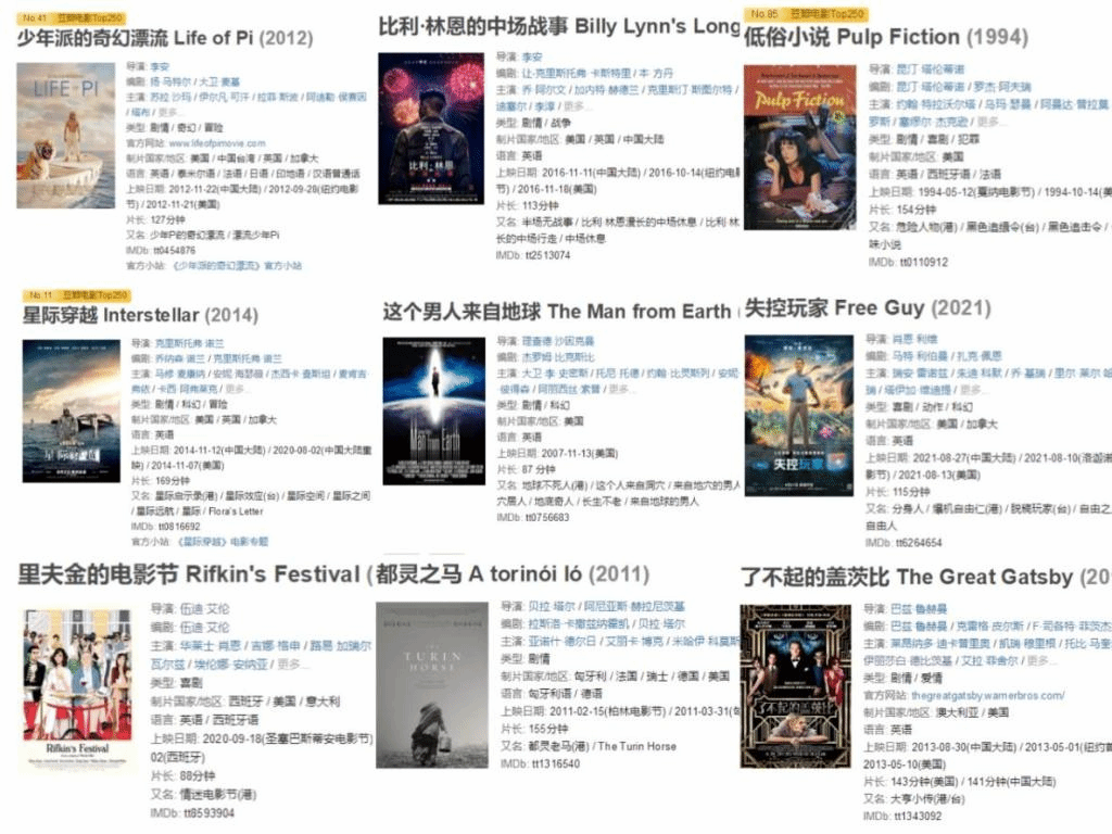 之后,楚清莹同学推荐了伍迪·艾伦导演的作品《开罗紫玫瑰》《里夫金的电影节》、加斯·詹宁斯导演的作品《银河系漫游指南》、昆汀·塔伦蒂诺导演的作品《低俗小说》等电影。