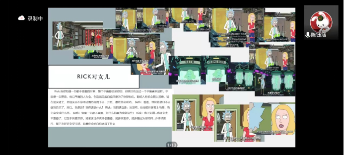 之后,陈钰涵同学以Rick and Morty中的“Rick”和“Morty”为例,生动地展示了一个虚无主义者对于婚姻、家庭、爱情等人生重大命题以及对于心理咨询、虚无主义的态度。
