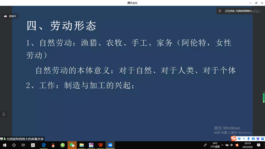 在讲座的第四部分,尤老师列举并论述了诸多劳动形态。从时间顺序来说,第一个是自然劳动。从原始的渔猎到固定的农业和畜牧,再到手工劳动、家务劳动,都属于传统的自然劳动,它是对自然对象天然的依顺性劳动。第二个是工作,这是近代开始人类劳动的主要形态,是高度社会化的协作性的劳动。第三是被分离出来的脑力劳动,它为体力劳动以及作为中介形态的工具的改进和技术的发展,提供了一种根本性的动力。第四,抽象的实践与行动的问题。在古希腊,劳动指的是制作性的活动,这是一种制作人对物质的加工制作活动,不是自由民典型的、代表性的活动。自由民和贵族主要从事的是人和人的自由交往,这被叫做实践。