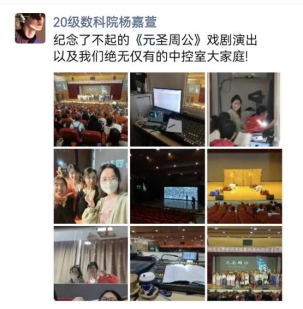自《元圣周公》筹备以来,困难重重,本该在去年上演的戏剧受到各种因素的影响不断推迟,全体演职人员的共同努力下,一年来的辛勤汗水,终于在这一刻浇灌出成功之花,为师生们呈现出一场精彩的戏剧表演